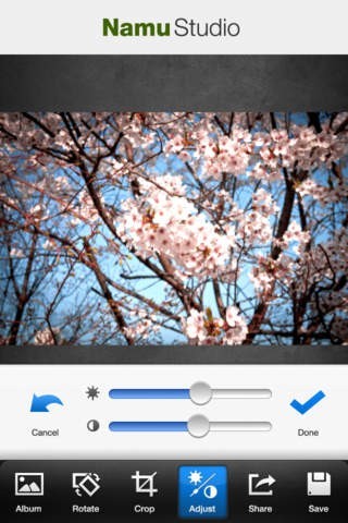 使い方も簡単。画像を選んで切り取り、明るさ調節、拡大して完成です