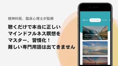 現役のマインドフルネス講師や臨床心理士に監修されており、不眠・ストレス・集中力低下に悩んでいる方に最適です。