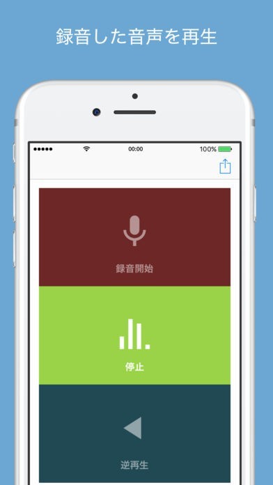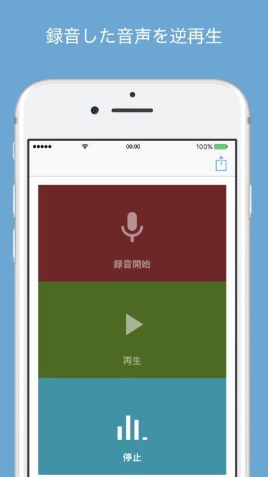 音の逆再生または通常の再生と録音に対応したアプリです。シンプルな操作画面も特徴で、録音、再生、逆再生の順でわかりやすく構成されています。音の対象はアイデア次第ですので、自分の声だけでなくペットや録音可能な場合は環境音も試すことができます。逆再生はミュージシャンやアーティストにも活用されており、真似が難しいことから、オリジナル音源や音楽の作成にも適しています。