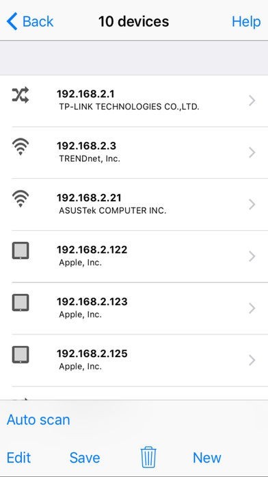App Storeより引用Network Ping is a software test tool for maintaining and debugging network problems on a local area network (LAN). Get an easy view for a full subnet on a single screen. Look at the screen to the left displaying the status for devices 192.168.2.0 - 192.168.2.255. Green and the device is working, yellow, there is a problem, and red, the device is not any longer on the LAN.