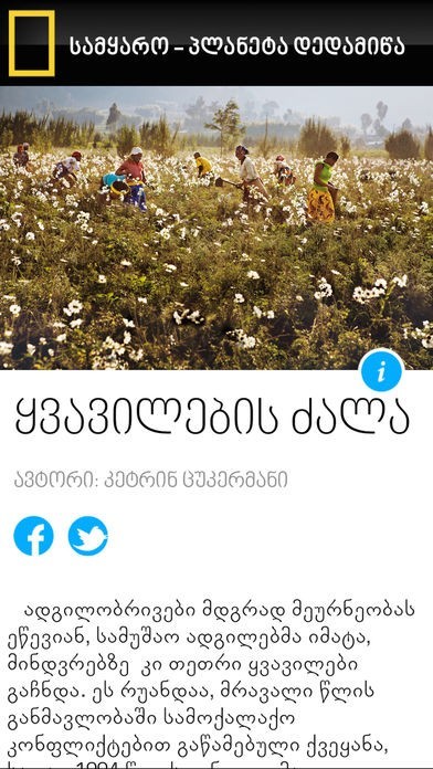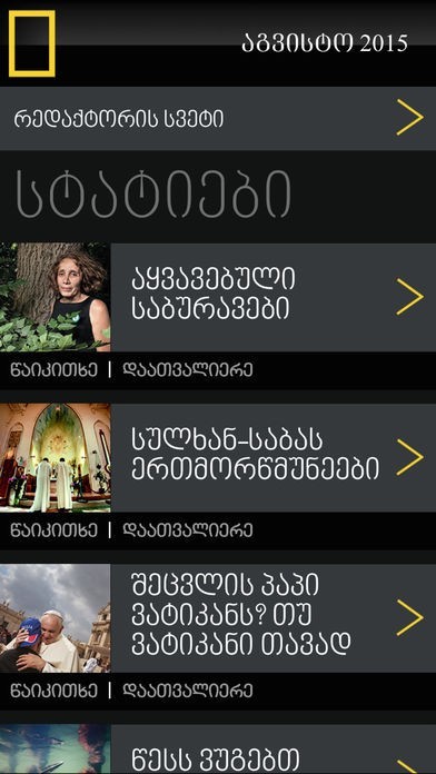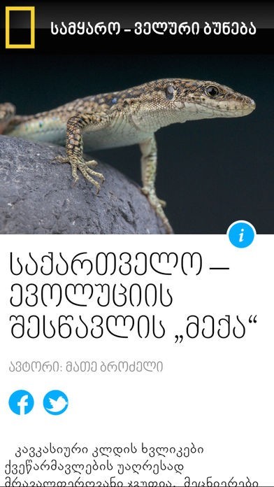 National Geographic Georgia is an official Georgian language edition of the National Geographic Magazine.