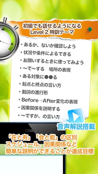 このアプリでは、文字だけではなく、音声による解説機能も付いています。忙しい時などにもハンズフリーで使うことができ、且つ、文法や表現の理解度を高める事も出来ます。