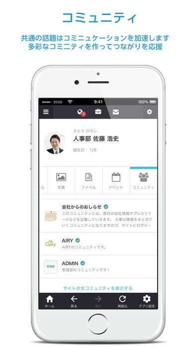 同僚や上司との交流に活躍!コミュニティを作成などの多彩な機能を用意!