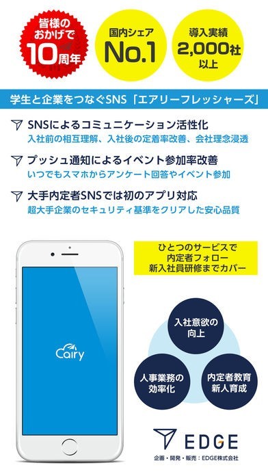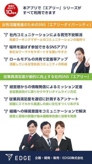 「エアリー」は、600社8万人以上が利用する社内SNSアプリです。 タイムライン機能を搭載しており、多数の情報をまとめてチェックできるのが便利なポイント。 テキスト投稿はもちろんのこと、写真もタイムラインで確認できるのが特徴です。 アンケート機能を利用すればイベント開催もスムーズに行える他、コミュニティを作成して社内交流を深めることもできるようになっています。