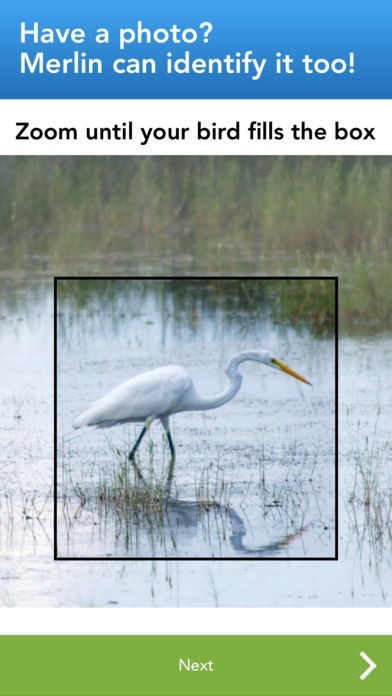 If you have a photo, Merlin can help there as well. Take a photo, choose from your camera roll, or snap the viewfinder of your zoom camera, and Merlin's powerful AI will suggest an identification almost instantly.
