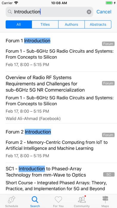 * Search through the entire technical program, by searching for session titles, talk titles, abstracts, and author names