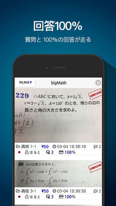 App Storeより引用BigMathは、数学の問題に質問したり、答えたりするためのアプリケーションです。