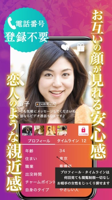 チャットでメッセージを何度かやり取りして新密度が上がったら、ステップアップしてビデオ通話で更に新密度を高めましょう。ビデオ通話だけでなく、音声通話の利用も可能です。