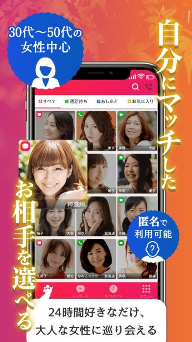 自宅にいながらでも出会いの場を簡単に広げることができます。24時間いつでも相手を検索することができて、気に入った相手には気軽にチャットでメッセージを送ってみましょう。