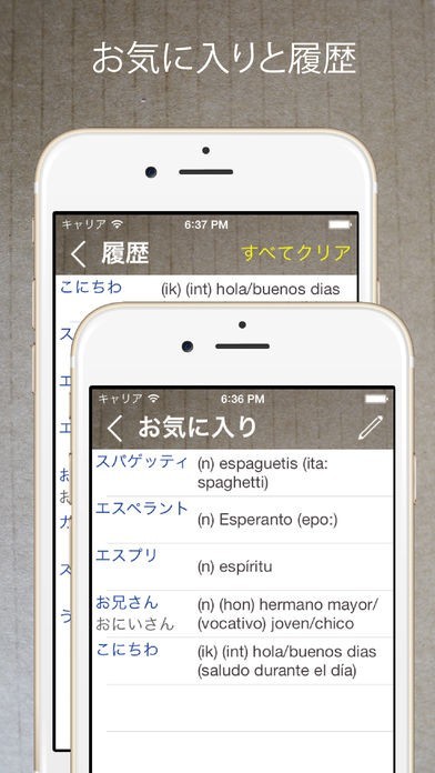 オフライン検索に対応しているので、通信環境が整っていない場所でもスペインが勉強しやすかったです。お気に入りに特定のワードを登録出来る仕様もメリットでした