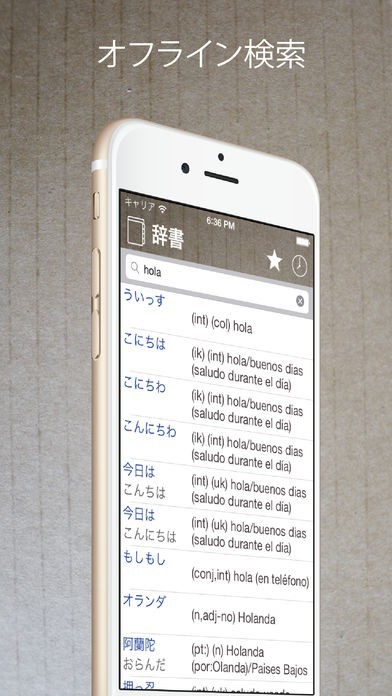 日本語とスペイン語の変換ができてオフライン検索もできるので助かります!
