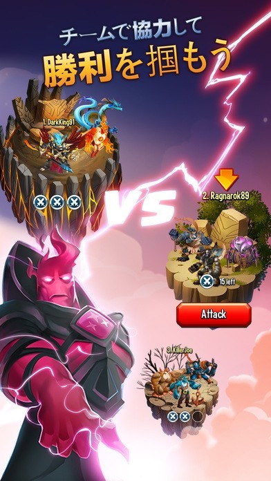 新しいスキルや驚異のパワーをロック解除して、どう猛なモンスター部隊を編成しよう。冒険マップに繰り出して戦闘に参加したり、モンスターアリーナで敵を倒そう。