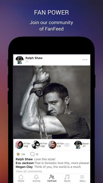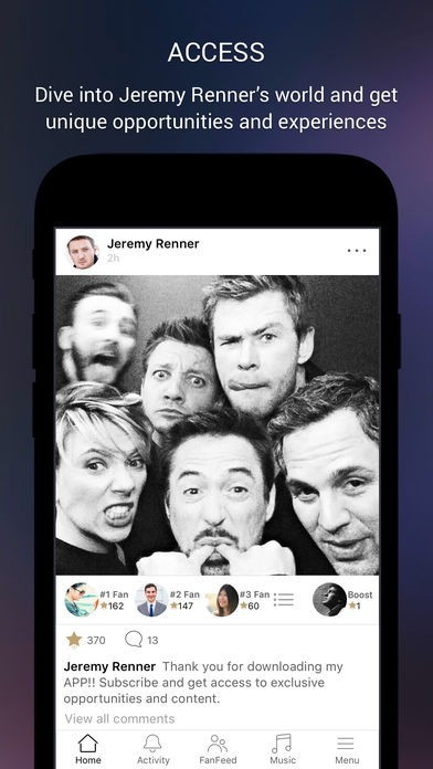 - Boost your comments with Superstars, become a Top 3 Fan, and be seen by Jeremy Renner.