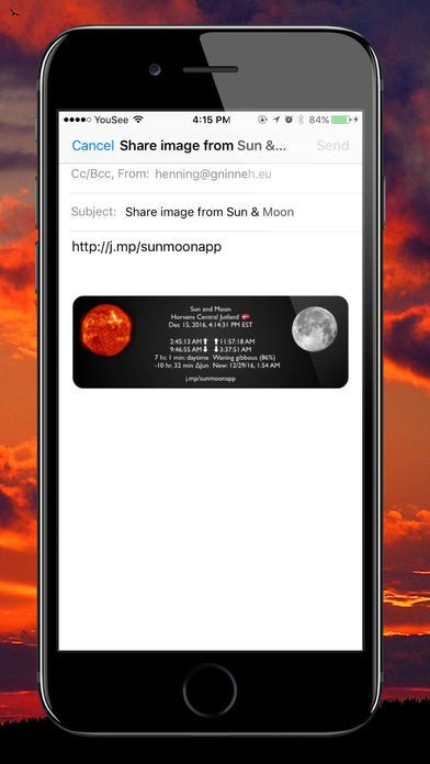 共有ボタンで友達と太陽や月の情報をシェアできる