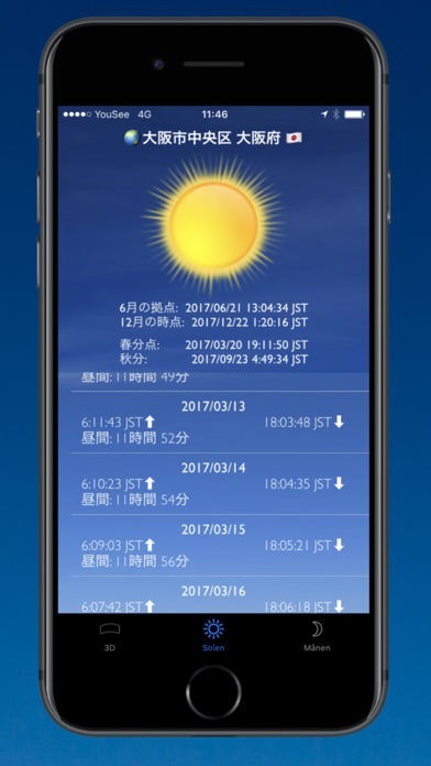 太陽と月 プロというアプリは簡単に様々な場所や日程で日の出と日没の時間をどういう風に違っているかを確認できるアプリになります。また通知の機能は夕日や拠点や分点や日没前の通知来るだけでそれ以外の迷惑な通知は来ないので変な通知が来ないか心配せずに済んで良いです。