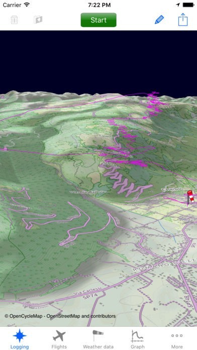 パラグライダーでどこを飛行したのかGPS機能で記録可能。どのルートを飛べば良かったのかなど、3Dマップ上に表示された記録を確認することで、フライト上達に役立つツールです。