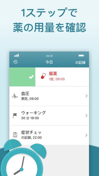 リマインダ機能で薬を飲む時間を教えてくれる薬の時間: 薬リマインダと健康の日記