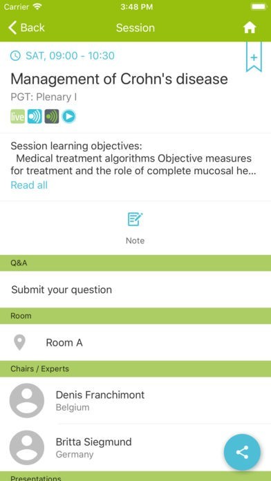 Access all sessions, presentations, posters, abstracts, exhibitors & maps. Browse sessions by day, pathways, topics, types & formats. Create your personalised congress programme. Find practical congress information. Stay informed: receive the latest news & follow discussions on the #uegweek Twitter feed.