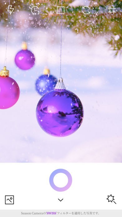 雪やクリスマスなど冬の雰囲気にあった写真を撮ることができます。12種類あるフィルターはリアルタイムで見ることができるので、そのシーンに合ったものをチョイスすることができます。