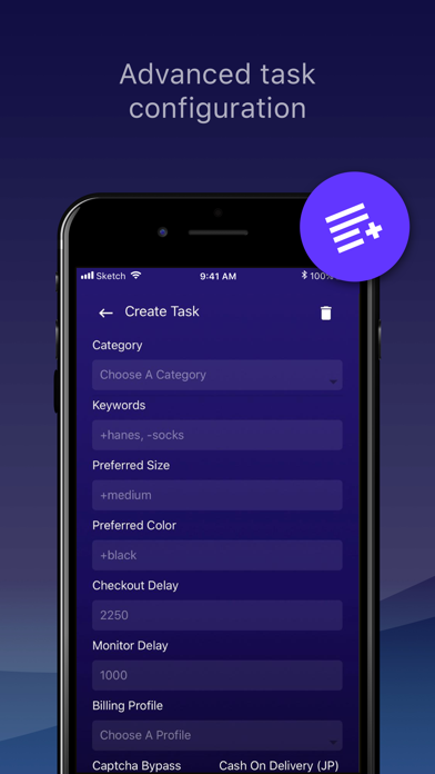このアプリはiOSで最も速いSupremeのbotです。シンプルで動きがスムーズであり、迅速なので使いやすいです。ウェブショップで限定された誰もが望む商品を購入します。