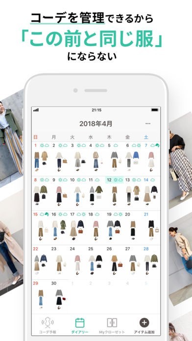 さらに、予定や天気に合わせて着たいコーディネートをカレンダーに登録しておけば、当日のコーデ選びで慌てる心配なし!