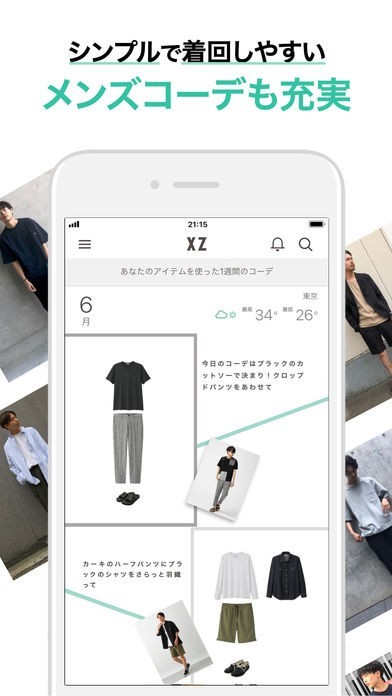 手持ちの服をXZに登録すると、住んでいる地域の天気・気温に合わせた1週間分のコーディネートを自動で提案します。