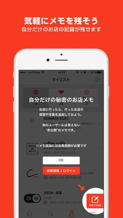 好きなお店を自由に保存することができます。今後旅行に出かけた時に行こうと思っているレストランやカフェなどを記録できるので、友人に教えてあげたい時などに役立ちます。