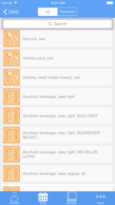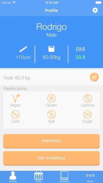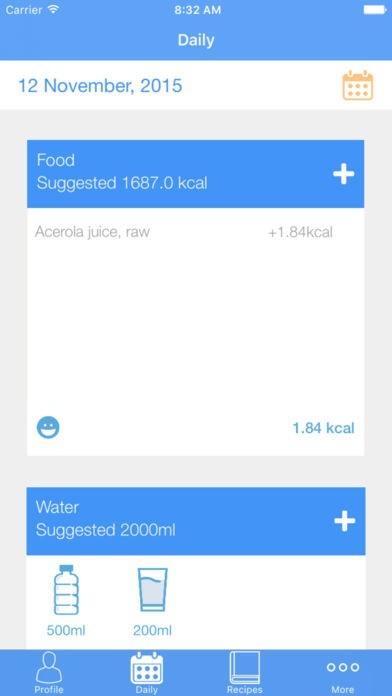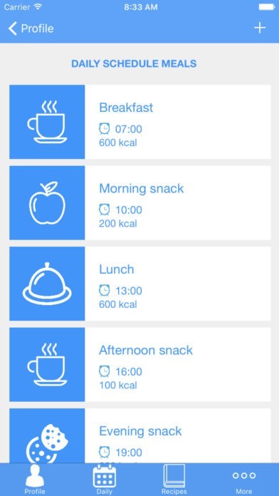 - Your daily informations about energy, carbohydrates, protein and fat;
