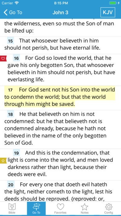You can also organize your favorites bible verses in categories, making easy to find then later.