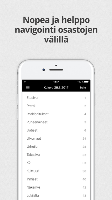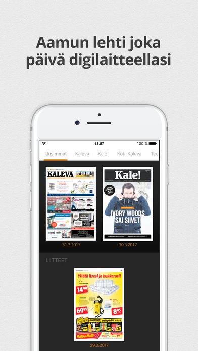App Storeより引用eKaleva-sovellus tuo Kalevan laadukkaan sisällön laitteeseesi päivittäin. Saat aina tuoreet uutiset ja tapahtumat mukaasi heti aamusta. Aiemmat lehdet säilyvät arkistossa, joten voit palata mielenkiintoisiin juttuihin myös myöhemmin.