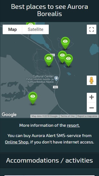 App Storeより引用Receive aurora alert, when Aurora Borealis are visible in Pyhä area.