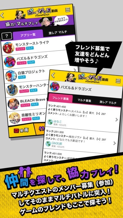 ゴージャス動画は、宇宙海賊ゴージャスとゲームを楽しむものであり、マルチ募集から、掲示板でフレンズを募集したりすることもできます。プレイ動画の紹介などもしてもらうことができるアプリであり、そのゲーム内で開催されるイベントの情報なども配信してもらうことができます。話題となっている大人気ゲームの情報がすぐに手に入るようになります。すべてのゲーム好き、ユーザーに効率的な進行を手助けしてもらうことができるアプリとなっているわけです。