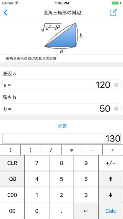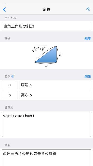 このアプリでは、2次方程式の解を求めたり、ピタゴラスの定理を使って直角三角形の斜辺の長さを求めるといった手計算をする場合に時間がかかる計算を簡単にすることができます。
