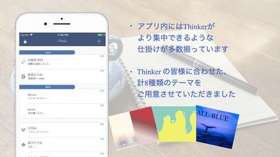 私達はそんなThinkerである皆様に、より集中していただくため、アプリの各所に様々な仕掛けを施しました。