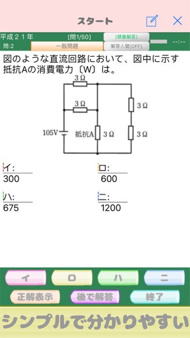 400問以上の第1種電気工事士の過去問を解くことができるこのアプリでは、出題順をダンダムに入れ替えられる他に、写真問題のみのピックアップや、配線図の種類ごとの出題など自分が勉強したい場所を集中して解くことができます。