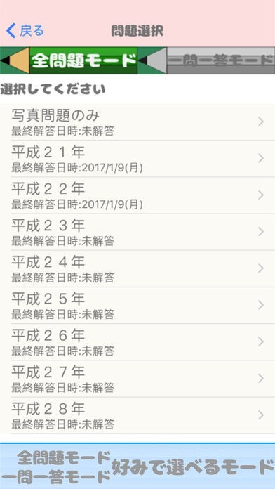 自分が過去に正解できなかった問題だけをピックアップして解くことができる他、反対に、過去に正解した問題のみを出題できるため、復習や、たまたま正解できた問題の洗い出しが行えます。