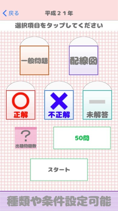 アプリには、実際の試験で出題された過去問を解ける全問題モードの他に、それらの問題から出題される勉強用の一問一答モードが用意されています。一問一答モードはスキマ時間の勉強におすすめです。