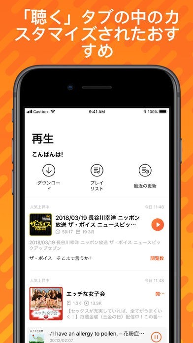 あらかじめ気になるポッドキャストやお気に入りのストーリーをダウンロードしておくとネット環境がなくても楽しめます。ストリーミング再生と比較しても再生中に止まってしまうことがありません。