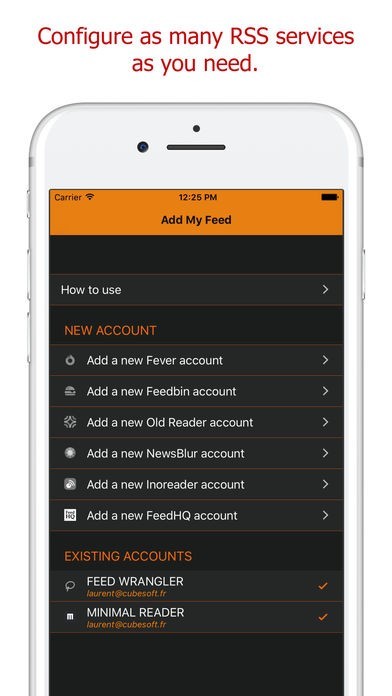 多数のフィードリーダーに自動サインインして動作