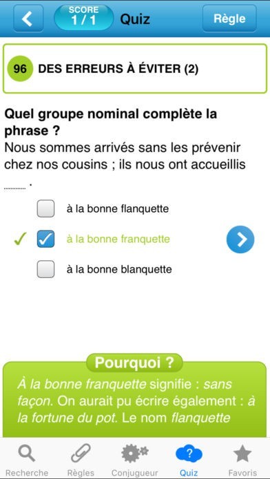 - en se testant avec les quiz, bien ciblés, accessibles depuis la règle : un moyen ludique et efficace pour vérifier qu’on a bien compris.