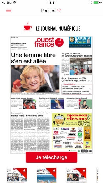 フランス地方紙「ウエスト・フランス」の電子版アプリ!