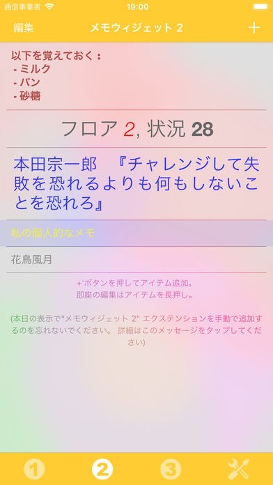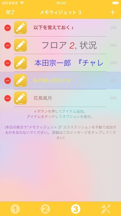 各メモウィジェットは決定されたユーザーテキストを表示します。