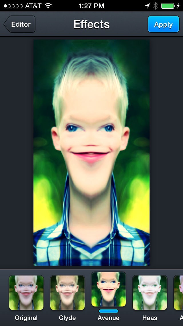 写真に表示されている物をスワイプで伸ばしたり真ん中に寄せたりすることができます。そのため宇宙人のような見た目の人物などの衝撃画像を作りたいときに有効活用することが可能です。