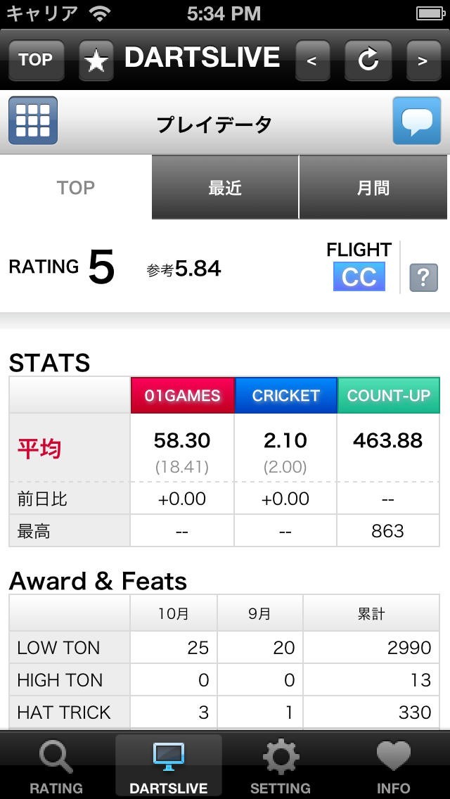 カウントアップやクリケット等の種目別にデータを保持出来るようになっています。レーティングの計算を行ってくれるため、どの位ダーツが上達したのかも素早く確認していけますよ。