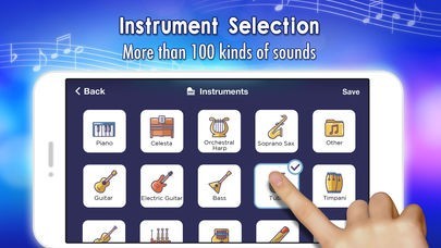 *ピアノに加えて、あなたはまた、そのような臓器、ハーモニカ、ギター、ドラム、トランペットなどなど、他の楽器音を選択することができます。