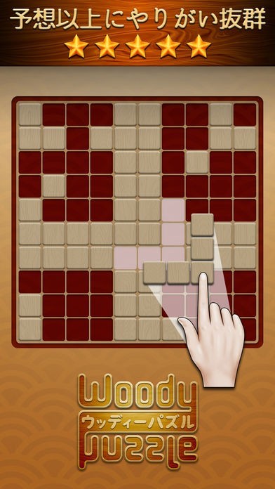 WoodyPuzzleは、木製ピースをマス目にはめていくパズルゲームで、縦または横を揃えていく