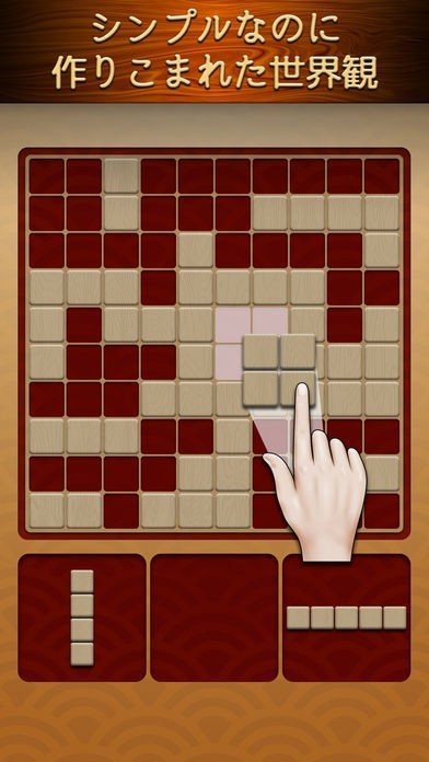 10×10マスに木製ジグソーパズルを当てはめていくブロックパズルゲーム