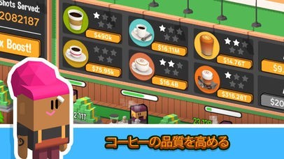 仕事の流れを自動化して、放置していても収入を得ることができます。コーヒーの品質を高めてレシピを工夫したり、マネージャーを雇ったり投資をしたりやり込める内容です。