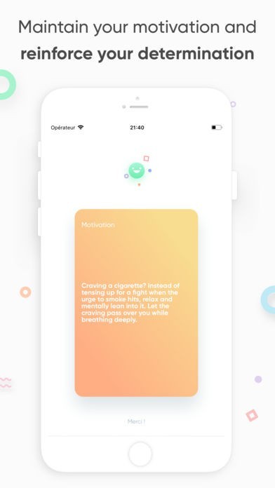 With this smoking app for your iPhone you can get many achievements depending on the time that passed since you quit smoking. About 84 achievements you can unlock to see all the benefits of stopping smoking. Try to become the ultimate Kwitter with getting high rankings! With this smoking cessation, you are able to shake your phone and get a motivational card. With more than 200 available cards on this quit smoking app you will get through the cravings easier.