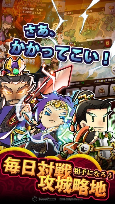 戦神の呂布や閉月の貂蝉、仁徳の劉備や武聖の関羽、そして江東の二喬、その可愛いくてカッコ良い、それぞれ違う能力を持つ武将が続々登場!兵種や攻撃方式は武将毎に異なり、レベルアップやランクアップすることで、より個性的で強力に成長できます!条件を満たせば、あの狡賢い英雄もあの天才軍師もあなたの配下に!